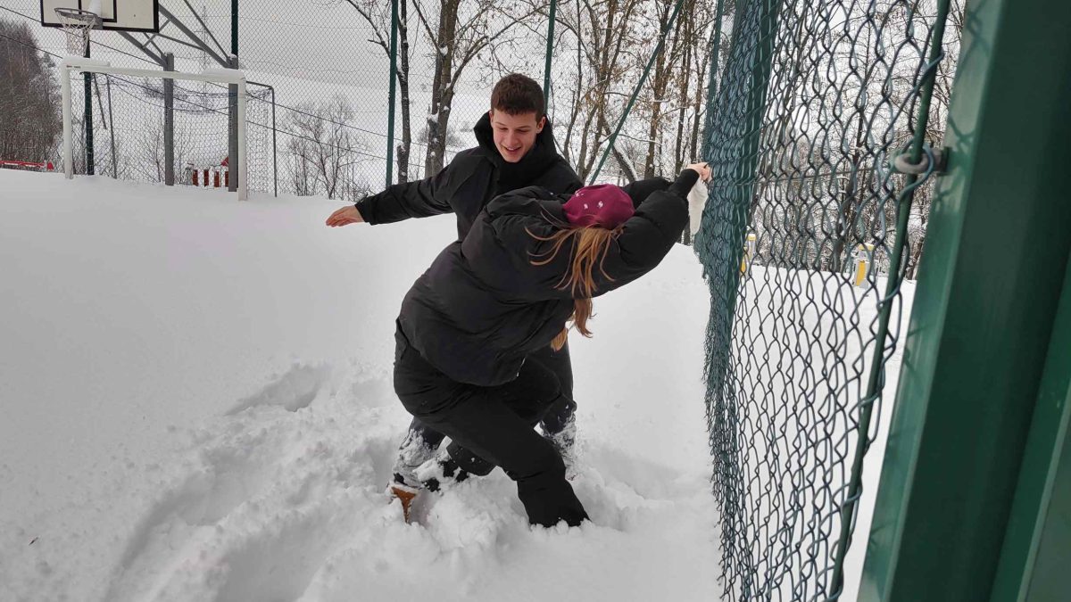Bez względu na to czy jesteś uczniem klasy pierwszej czy ósmej, każdy ma taką samą frajdę z zabawy w śniegu. Pogoda sprzyja do aktywności na świeżym powietrzu, a dzieci i młodzież nie zmarnowały ani minuty spędzając czas na zewnątrz. Zwłaszcza nasi przyszli absolwenci mogli odetchnąć po próbnych egzaminach i zrelaksować się w białym puchu. Ich wesołe miny są najlepszym na to dowodem.