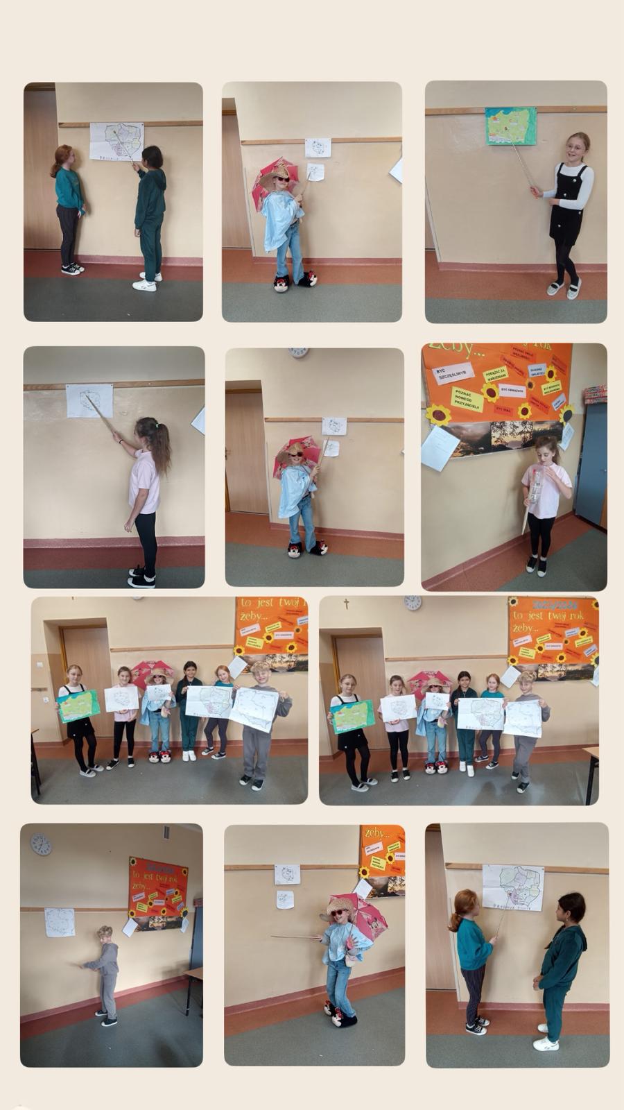 Uczniowie klasy czwartej na lekcji przyrody prezentowali prognozę pogody. Wykorzystali do tego zadania mapę którą sami wykonali, dane które sami zgromadzili, przyrządy, które mogli wykonać zgodnie z instrukcją w podręczniku. Dzieciaki były bardzo zaangażowanie w wykonanie zadania – najodważniejsi zadbali nawet o eksponaty. Zadanie niewątpliwie rozwinęło u uczniów umiejętność prezentacji i zachęciło do publicznych wystąpień. Czwartoklasiści przekonali się, że oprócz przekazywanej treści duże znaczenie podczas wystąpień publicznych mają niewerbalne środki komunikacji, takie jak gest, mimika czy postawa ciała.