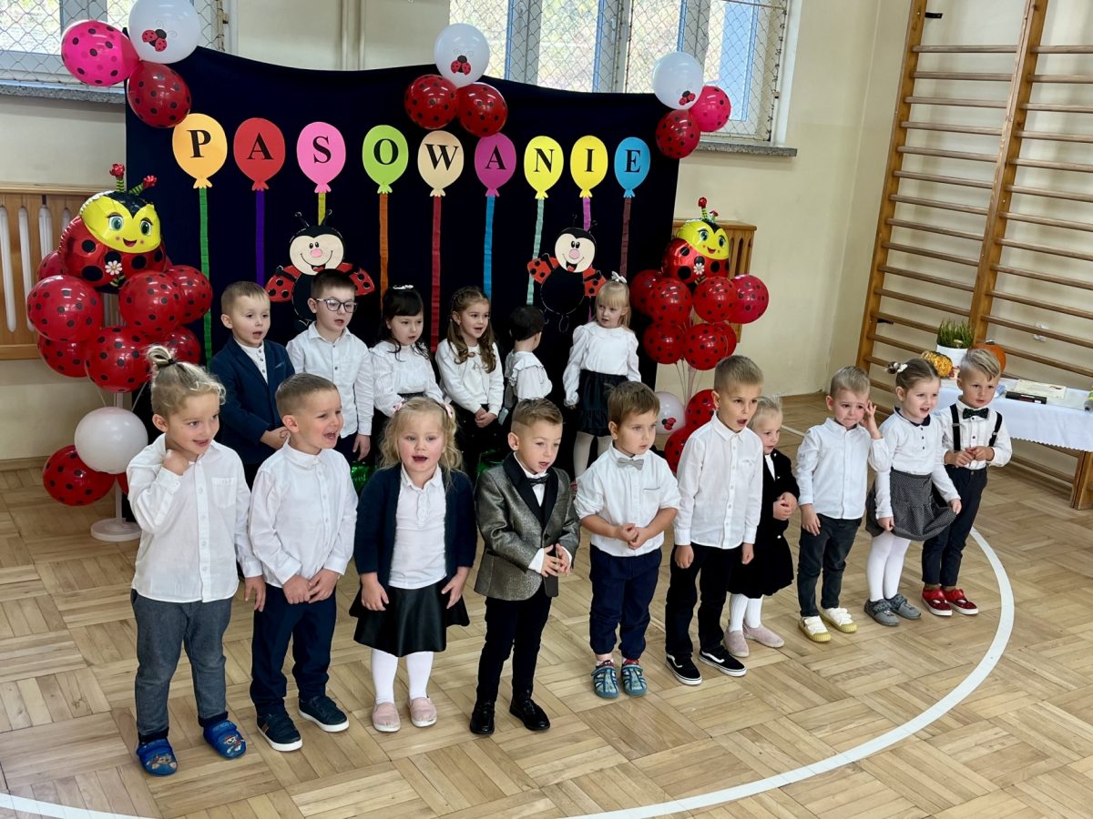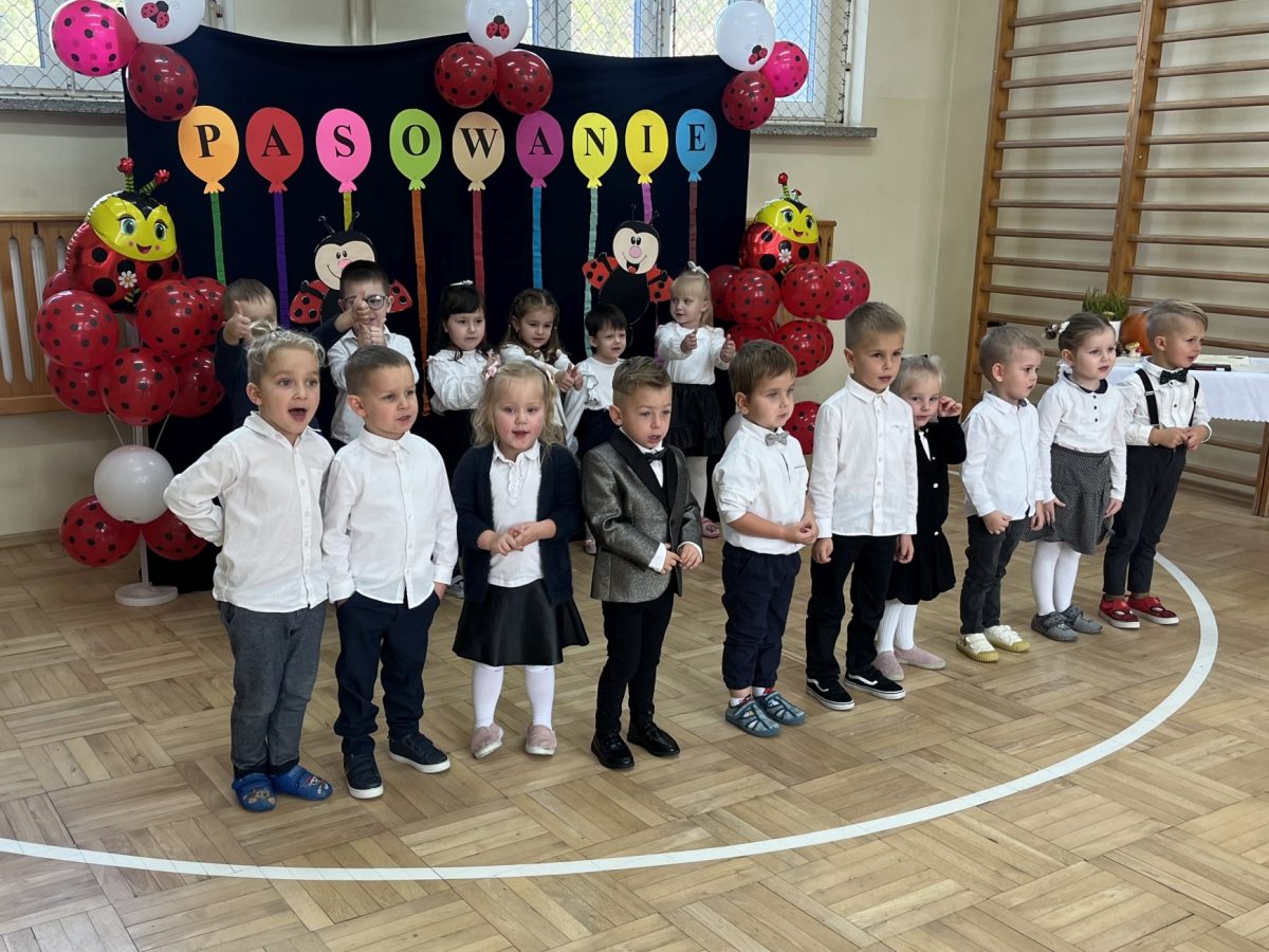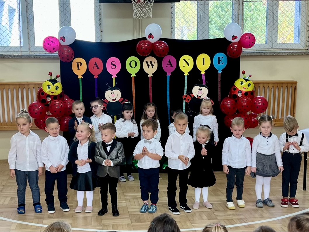 W dniu 21.10.2025r. odbyła się bardzo ważna uroczystość dla dzieci, pasowanie na przedszkolaka  gr. Biedronki. Uroczystość rozpoczęła się od przywitania Rodziców oraz dzieci przez Panią Dyrektor . Nasze muzykalne maluszki zaprezentowały swoje umiejętności, dając tym samym dowód, jak wiele już potrafią. Nie zabrakło tańców, piosenek i wierszy. Po części artystycznej dzieci obiecały: zgodnie bawić się w przedszkolu, przychodzić każdego dnia z uśmiechem, słuchać pani i pomagać kolegom, być dzielnym przedszkolakiem. Po złożonej obietnicy Pani Dyrektor dokonała aktu pasowania na przedszkolaka. Na pamiątkę tego ważnego wydarzenia każdy maluch otrzymał dyplom oraz kosz obfitości.
