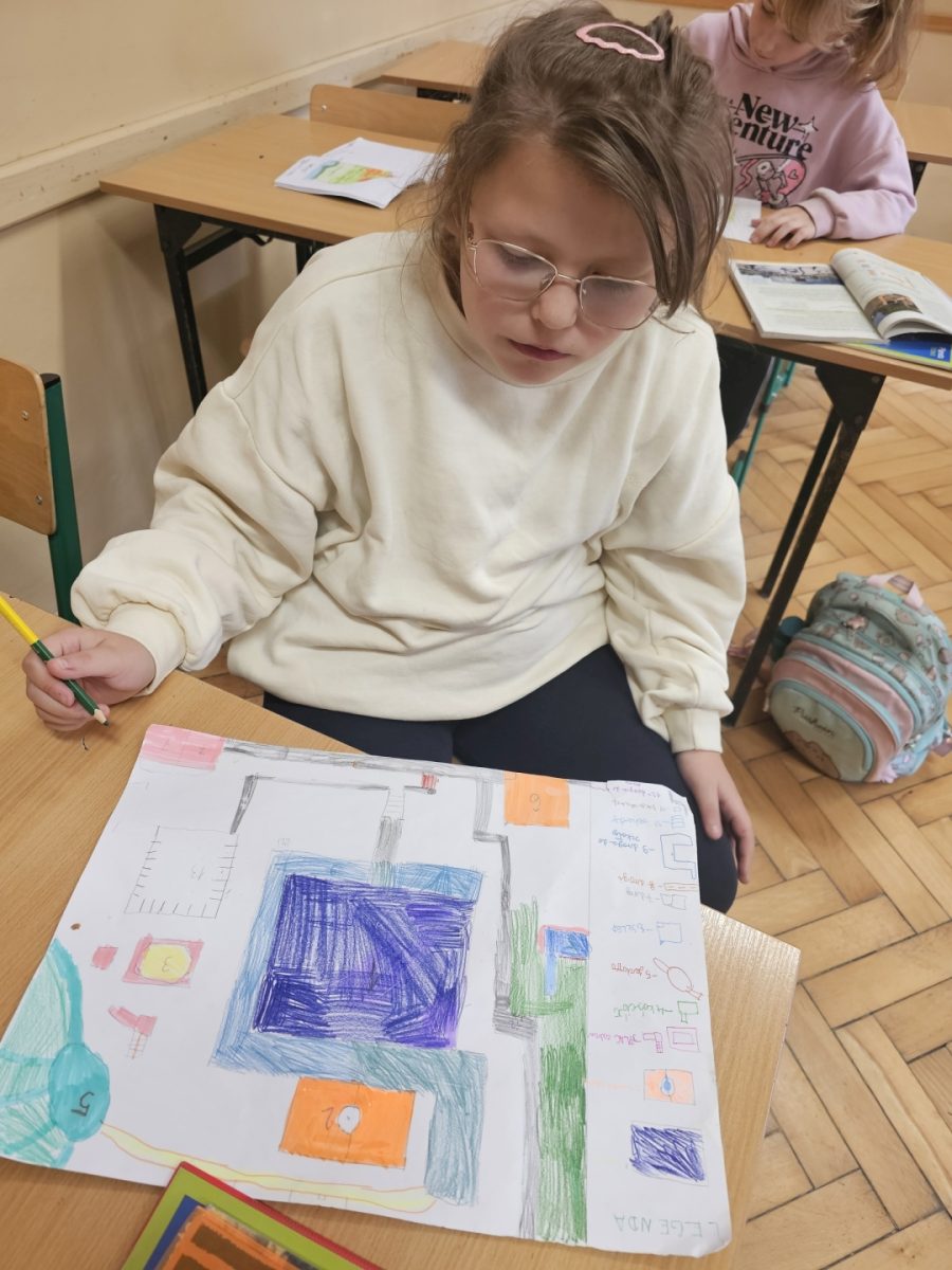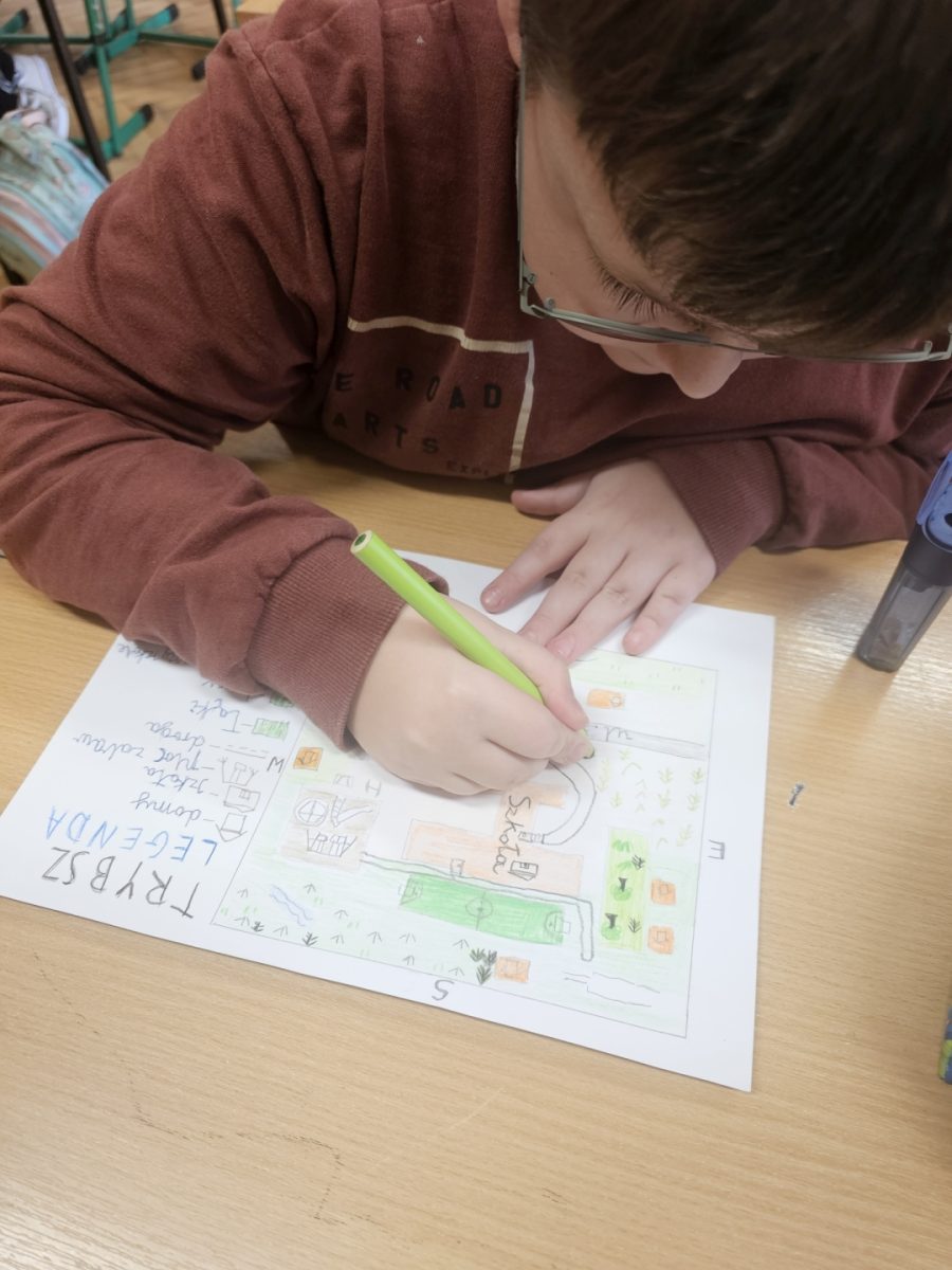 Uczniowie klas V na lekcjach geografii, realizując tematy związane z umiejętnościami czytania i interpretacji mapy i planu, przygotowali projekty przedstawiające zagospodarowanie terenu wokół szkoły. Podczas wykonania zadania mogli wykazać się kreatywnym podejściem do tematu i zachowując pewne wymogi związane z tworzeniem planu. Brawo dla uczniów za piękne projekty.